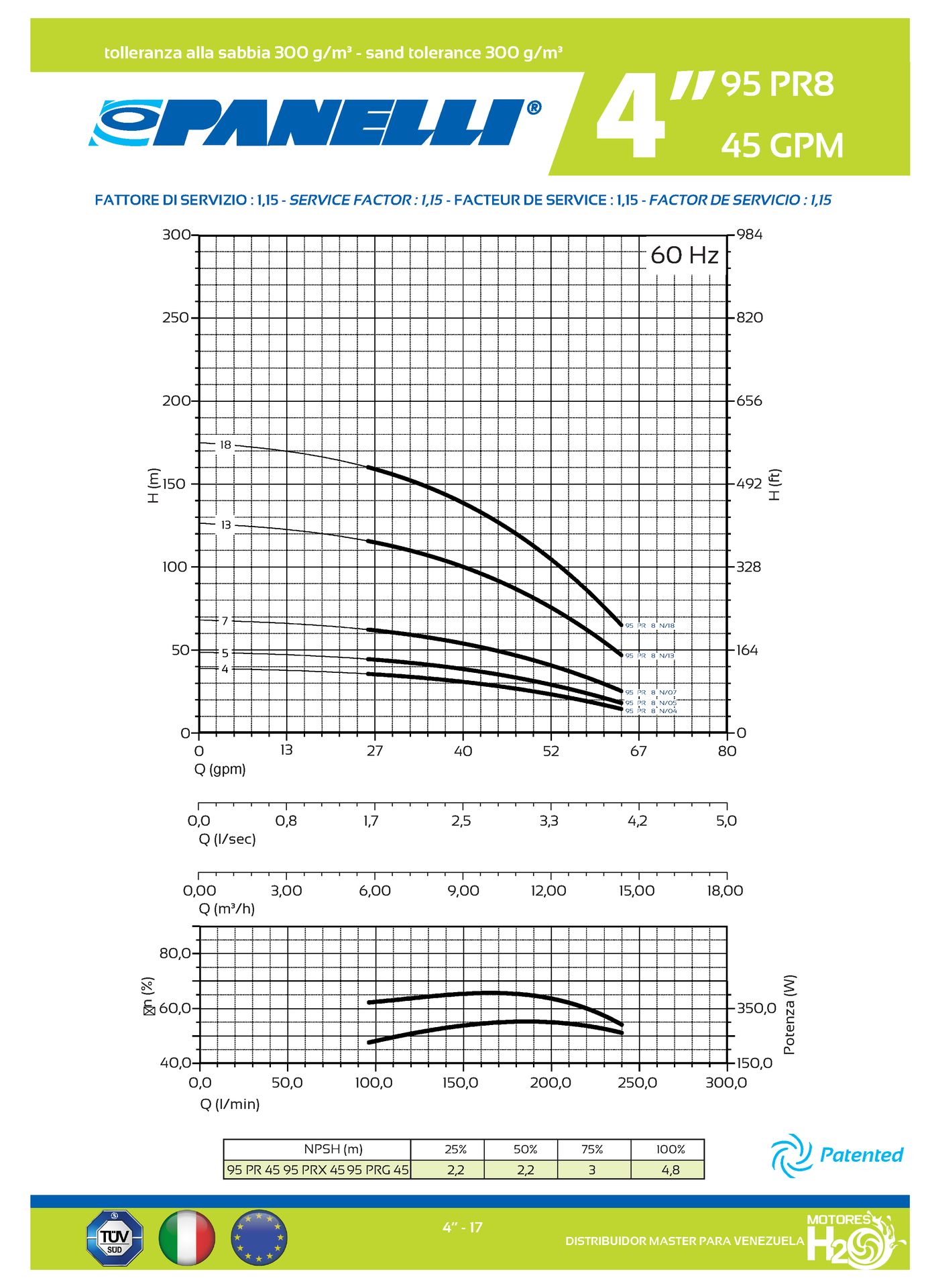 CUERPO SUMERGIBLE PANELLI 4" SERIE PR MOD. 95PR4505 45GPM 2,00HP 05ET 2"NPT NEMA4